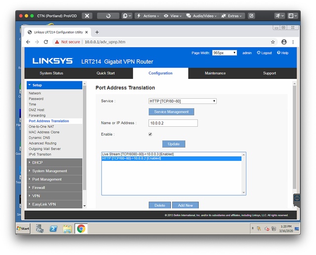 If you are a smaller organization without an IT department and would rather not port forward your Cablecast system from the public internet, you may still be able to setup a VPN for remote access. Many business class internet routers as well as higher end home routers have the ability to enable a VPN. It is beyond the scope of this article to cover enabling VPNs for all makes and models of router. Consult the documentation for your specific router.