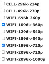 We recommend not picking more than 3 qualities. In this example, 2 qualities are being used. 360p (1096k) and 720p (1896k), totaling ~3mbps of upload bandwidth required. Note, it is best to have some overhead with these calculations for internet speed and network load/congestion variables.