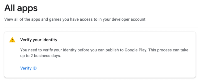 - Have a photo or scan of a valid ID ready, as Google requires this for verification. This can be skipped, but its required for publishing your application, so its best to get it out of the way and can take up to 2 days to be verified.