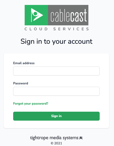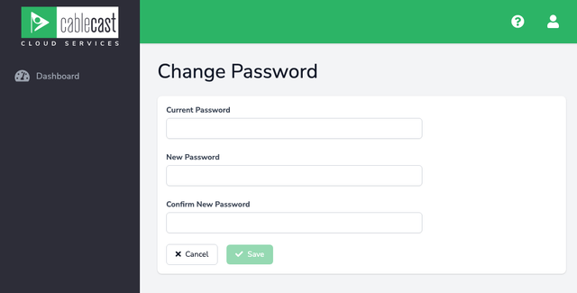 To change your Cablecast provided password for cloud.cablecast.tv, where you manage your Cablecast Apps channels and CabllecastRTMP servers, simply log into the Cablecast Cloud Services app at: