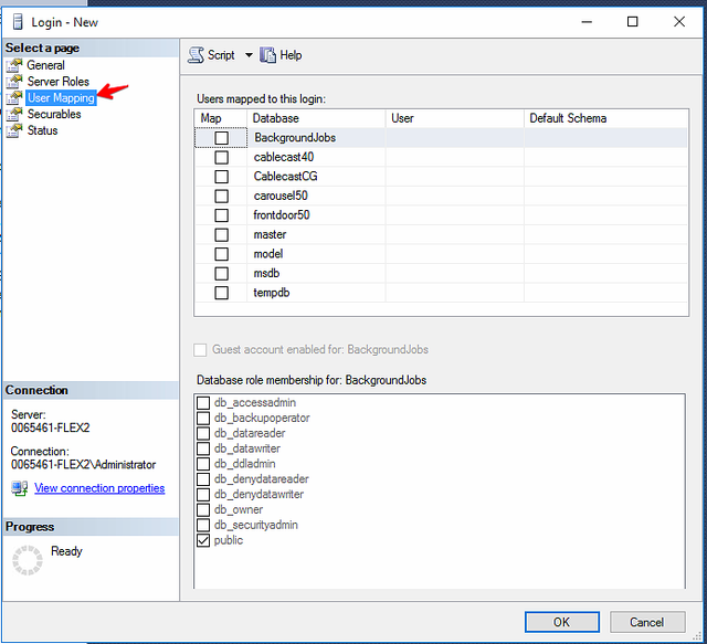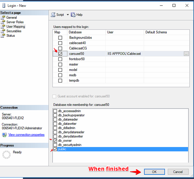 Check the Carousel box and select DB owner as seen in the window. Then click "OK" After this step you can close out of SQL Studio.