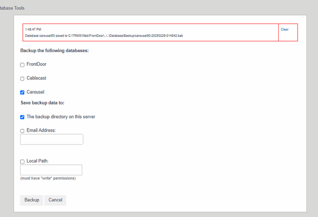 Carousel Backup Fails "Login failed for user 'IIS APPPOOL\Cablecast"
