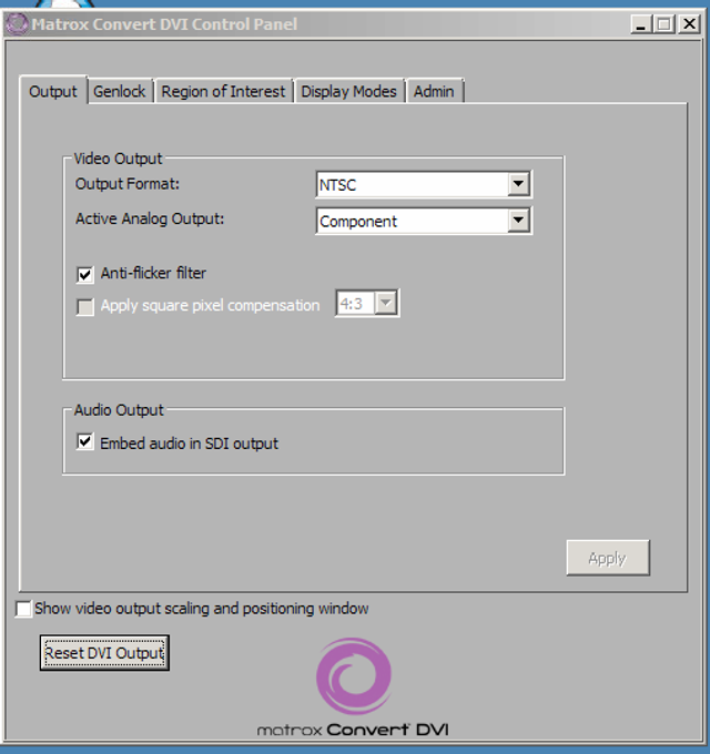 On the Carousel Player, exit out of the Display Engine. Go to the Start menu and open the Matrox Convert DVI Control Panel. Wait a second or two to make sure it is running. Then relaunch the Display Engine.