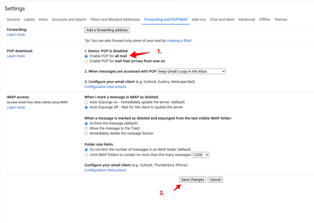 Find the "Forwarding and POP/IMAP tab and click on it.