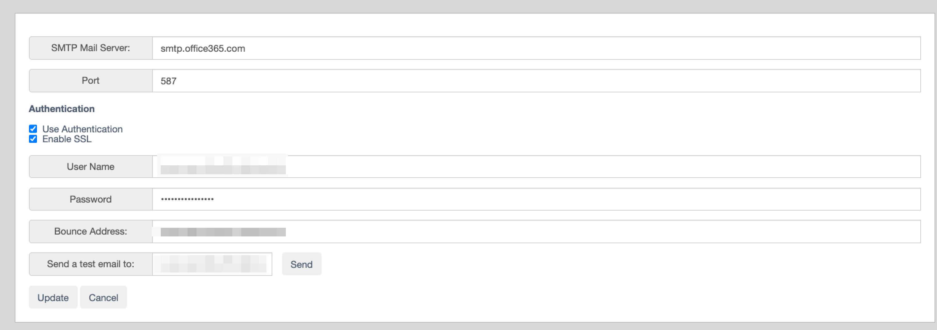 Configuring Mail Settings with an Office 365 account