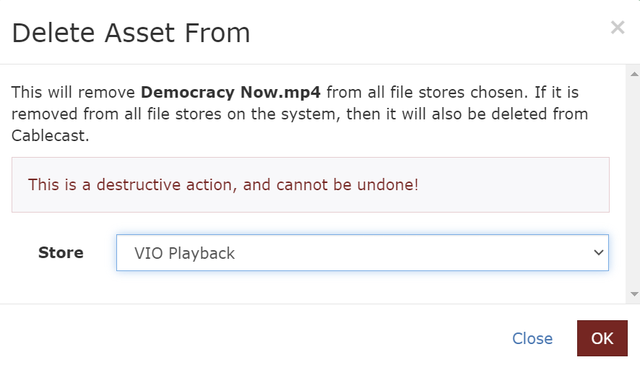 Deleting files from the Cablecast UI and the content drive with the click of one button.