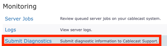 In Cablecast 7.9 we've added a feature to be able to submit logs to our Support team directly from the UI. This feature is particularly useful for our Bronze customers who may require assistance troubleshooting a technical issue.