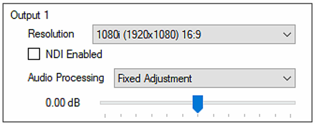 The options that you have for this output are No Audio Processing (None), Dynamic Loudness Normalization, and Fixed Adjustment. The Fixed Adjustment gives you the ability to adjust the overall audio level for that output by decibel. This will bring everything playing out of the output up or down in volume. This is what audio adjustments Cablecast servers had before version 7.3.