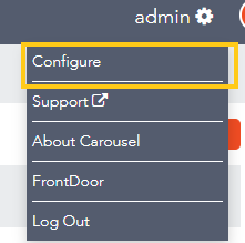 - When looking at your Carousel UI, click on the gear icon in the top right next and choose Configuration.