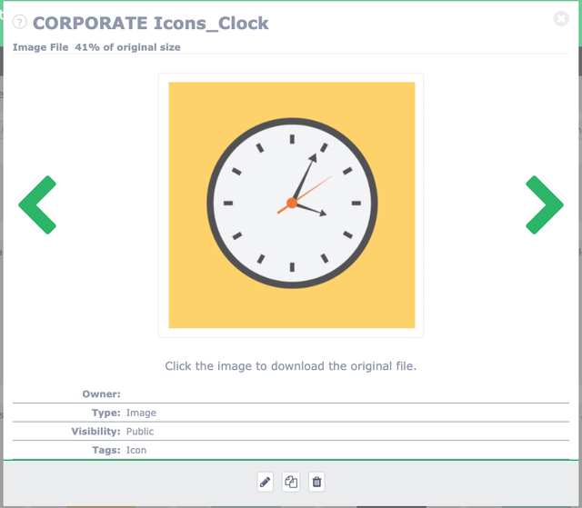 The Pencil Icon is your edit button. This will open a edit window that will allow you to rename the image, and any tags for searching, and the ability to make the me private which will only be visible to your user account.