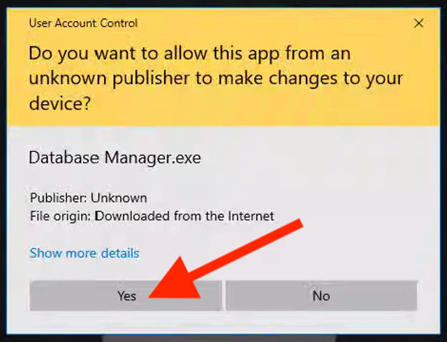 There will then be a prompt asking if you want to allow the tool to make changes on the device. Click Yes.