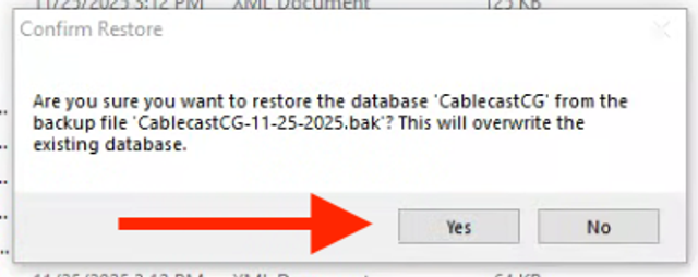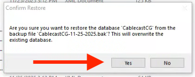 You can shift+click all of the databases to restore them all at once, or you can restore individual databases. As each database is restored, you'll be prompted to indicate if you're sure you want to restore the database, which will overwrite the existing database. Click Yes to confirm.