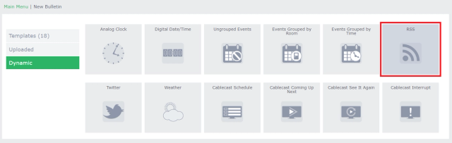 CablecastCG can use RSS Feeds to bring in dynamic bulletsin for your Bulletin Board. This is great as it reduces the amount of times you need to update your bulletins with fresh content.