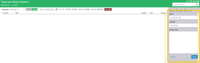 *Be aware that Schedule crawls will not play over any fill gap functions. Only over scheduled programming/shows.