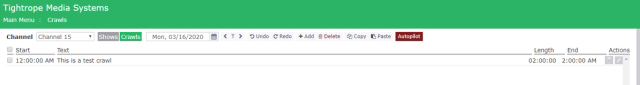 Click the AutoPilot button at the top of the screen to send the crawl to your broadcast.