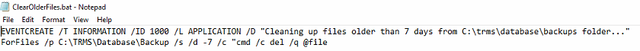 This batch file can be edited to increase or decrease the amount of time we wait for files to be cleared. Open the file in a text editor and update the value after -d and information log message