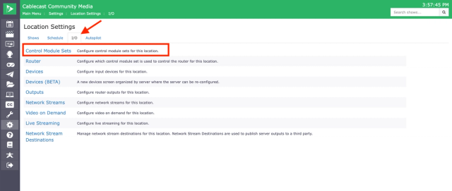 Once in the Location Settings Menu, we are going to click on the I/O tab and then choose Control Module Sets.