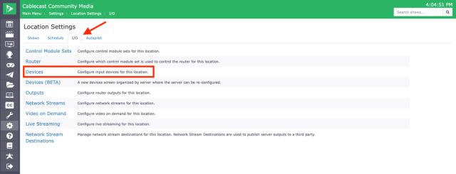 Select the I/O Tab and click on Devices.