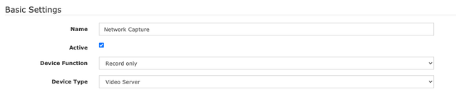 Under the Basic Settings, name this new device something like Network Capture or Network Encoder. Then set your Router Input to 0 before changing the Device Function to Record Only. Then set your Device Type to Video Server.