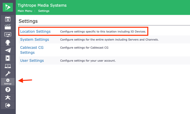 Navigate to Settings Menu in the menu bar on the left-hand side, then select Location Settings.