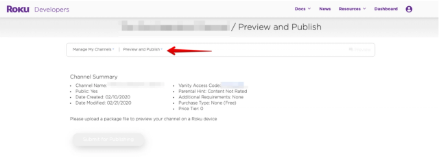Step 1 - Log into your Organization's Roku Account and Access the Developer Dashboard