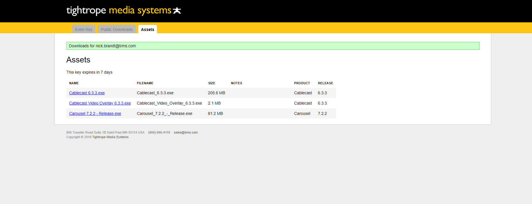Tightrope Support staff will generate you an update key and email it back to you. With update key in hand, it's time to figure out where to run the Tightrope Media Installers.