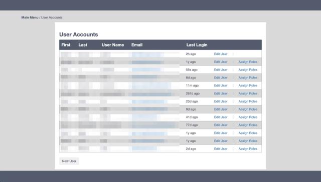 Here, you’ll see a list of existing user accounts. The list shows the first name, last name, email address, and last login for each user.